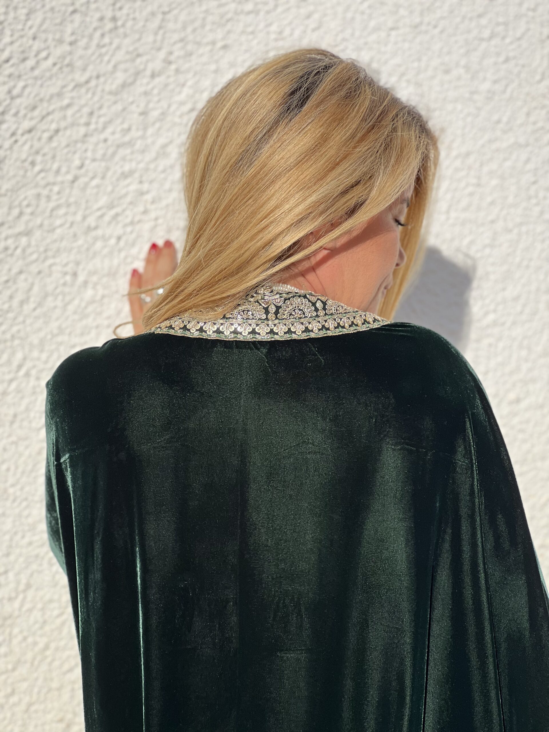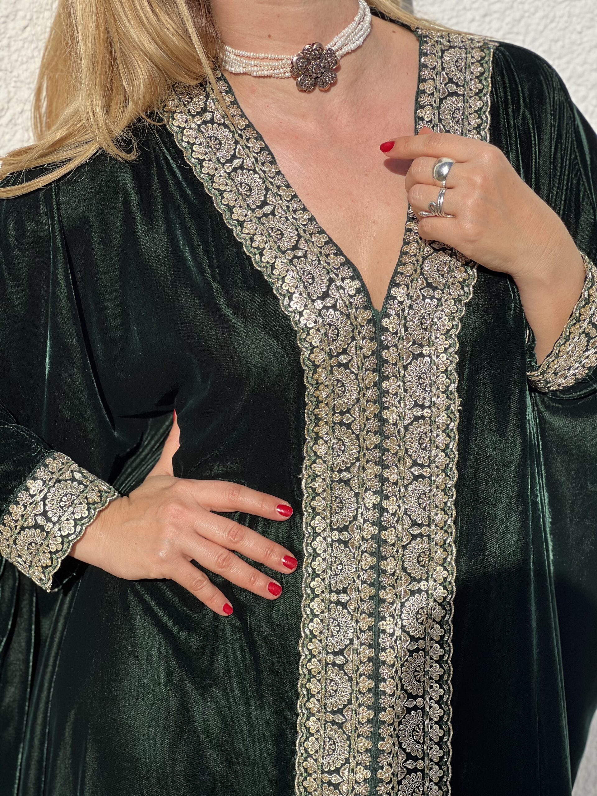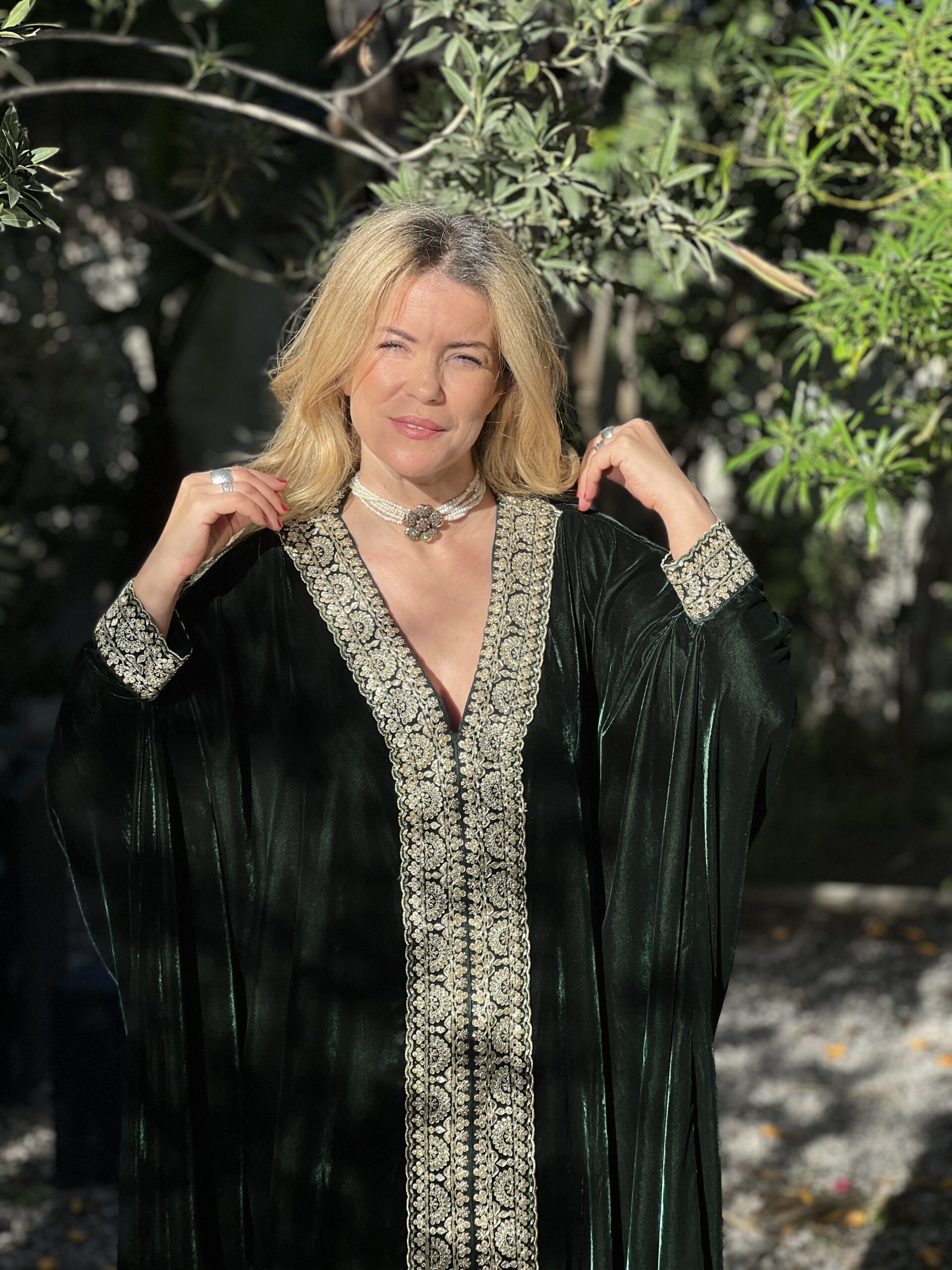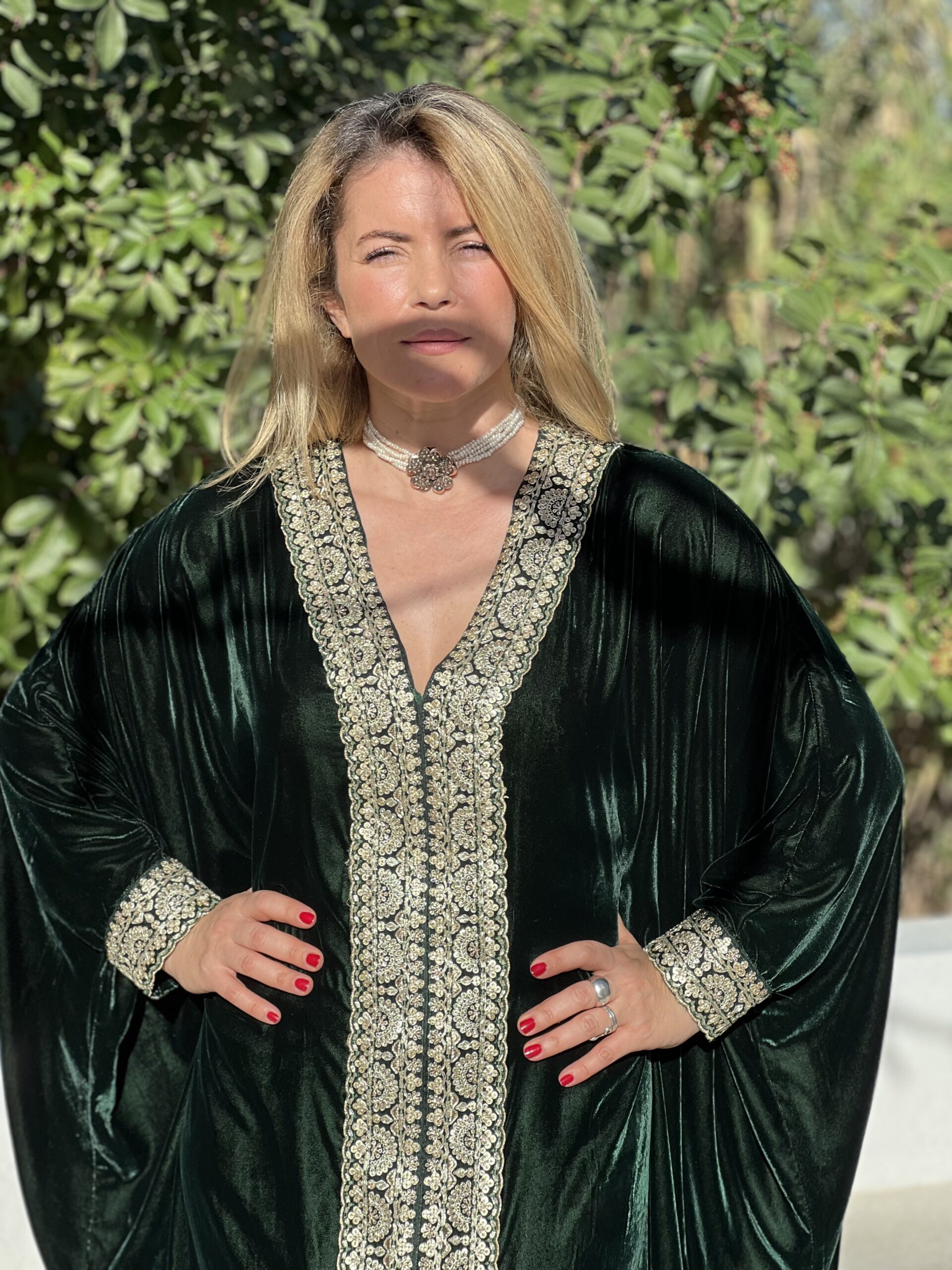 Jebba Amira en velours de soie , une pièce élégante pensée pour sublimer vos fêtes et vos soirées de Ramadan.